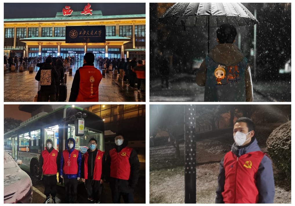 学校机关单位共120名干部职工在“两站一场”迎接学生,引导护送学生安全进站,帮助解决突发问题等。1月22日凌晨3点,志愿者在寒风中开始工作,每班次工作7小时,持续至学生返乡工作结束。冬夜中的火车站和高铁站里西安交通大学的“红马甲们”在夜幕下耀眼夺目,如灯火如星辰点亮这千万学子归家之路,传递学校的关爱和温暖。