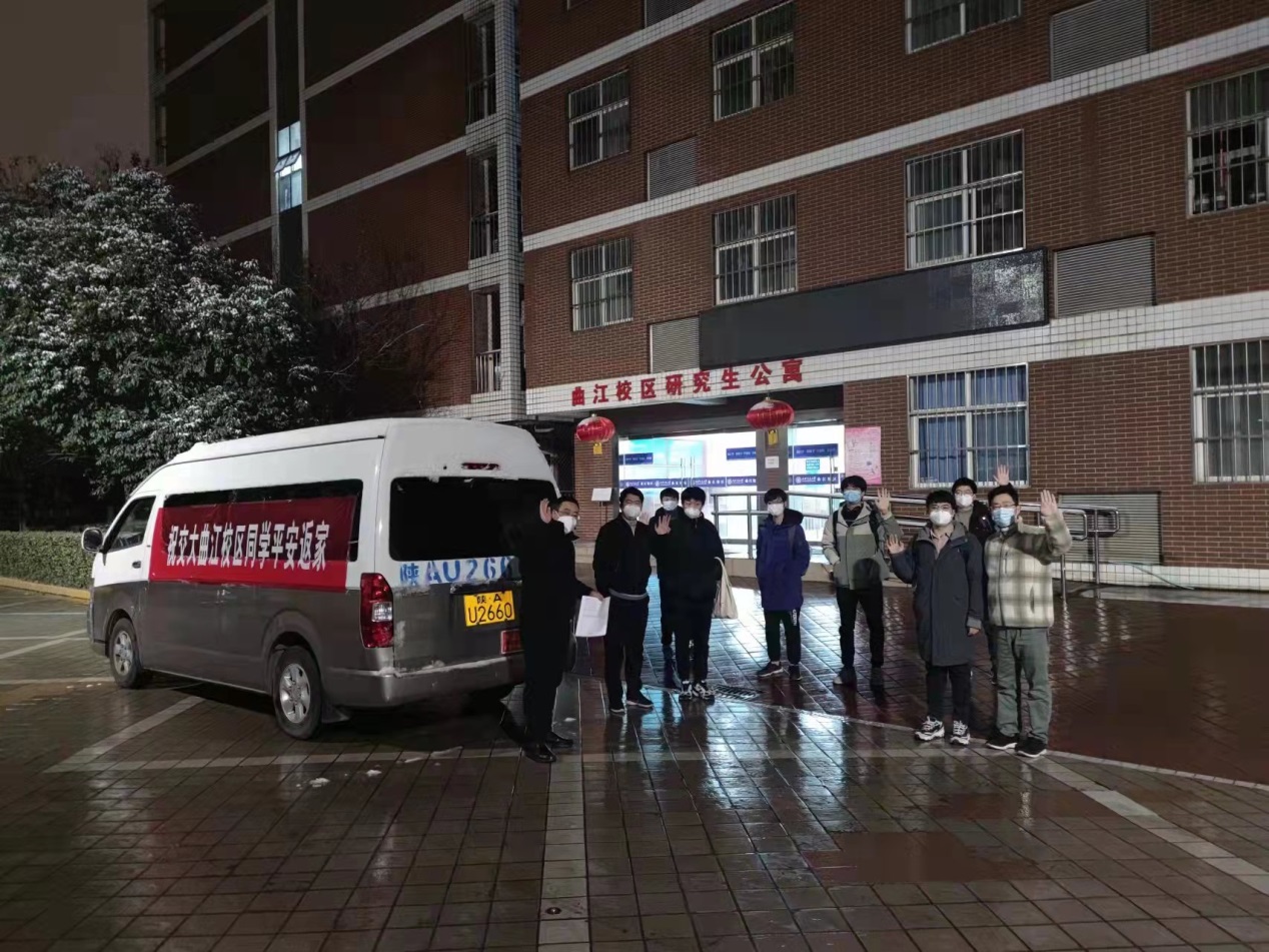 “感谢各位老师和志愿者的辛苦付出,让我感受到幼儿园放学的感觉。”曲江校区学生高阳飞在返家途中通过朋友圈向学校表达谢意。1月22日起,曲江校区精心组织校区学生分批错峰返乡,经历了一个月的校园封控管理生活,学子陆续踏上了返乡之旅。