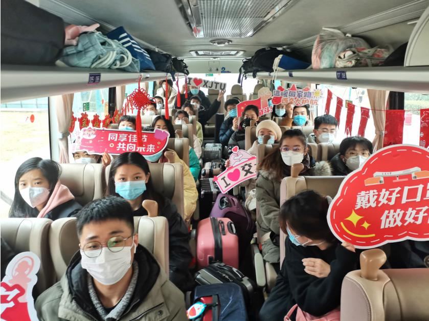 在众志成城的努力奋斗下,西安市疫情形势日渐向好。1月22日凌晨起,3.4万余名交大学子陆续踏上返乡旅途,这又是一次凝聚校内外力量的接力守护。在学校的周密安排部署和社会各界的大力支持下,学子们乘上了“西安交大返乡专线”,在“点对点”的闭环守护下踏上回家旅途。“我知道回家‘一路顺风’并非易事,在这背后凝结了校领导、辅导员老师们、志愿者同学们的汗水和不眠夜,还有来自社会、校友会等各方的支持,我想对为我们‘开路’的老师同学们说一声感谢。”电信学部张少荣说。