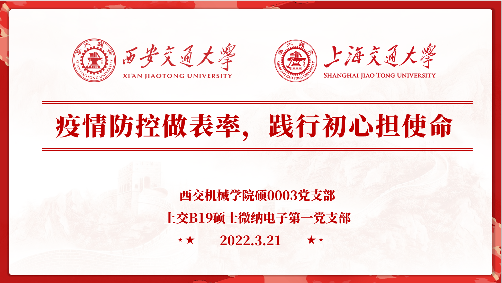 当前国内疫情形势严峻,西安和上海两座城市都处于疫情之中。3月21日晚,西安交通大学机械学院硕0003党支部和上海交通大学B19硕士微纳电子第一党支部开展共建交流活动,相互分享学习抗疫过程中形成的宝贵经验和心理感受,两支部全体成员线上参加。