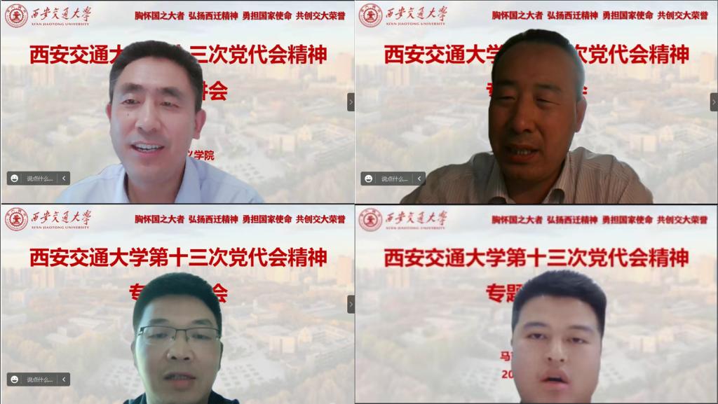 7月7日下午,西安交通大学党委副书记、纪委书记马博虎以线上形式向马克思主义学院宣讲学校第十三次党代会精神,并就立德树人根本任务落实情况、思想政治理论课以及思想政治理论课教师队伍建设情况进行调研。马克思主义学院党政班子成员、全院教职工以及学生党员代表共100余人参加宣讲会,马克思主义学院党委书记苏玉波主持会议。