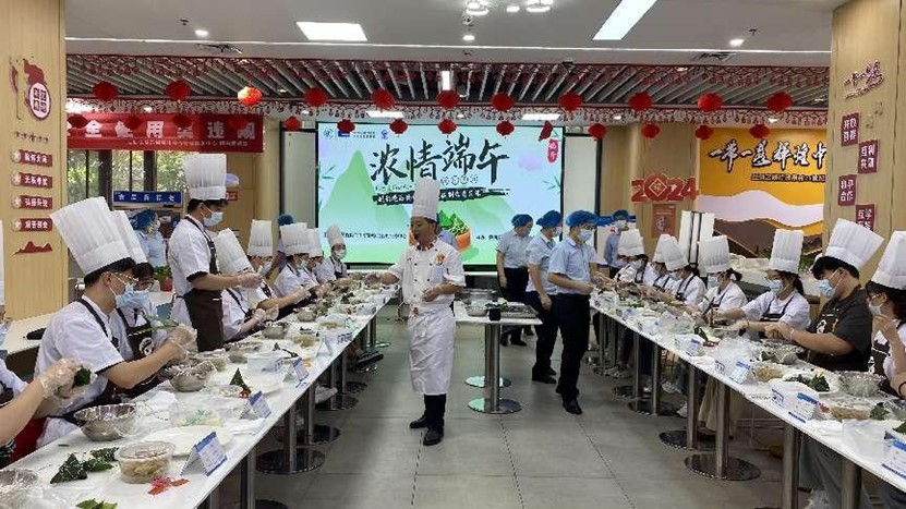 为弘扬中华优秀传统文化,引导学生在劳育实践中提升民族认同感和文化自信心,6月5日,一场以制作粽子和绿豆糕为主题的端午节劳育特色实践课在创新港惠风苑餐厅开展。此次活动由后勤保障部创新港综合管理服务中心、生命学院联合主办,惠风苑餐厅尚建和杨雄利授课指导,学院20余名研究生参加。