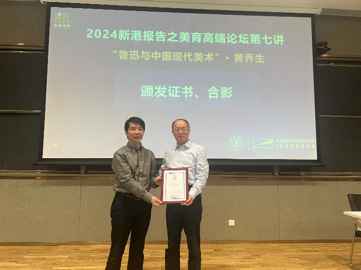 9月22日,北京鲁迅博物馆原常务副馆长、研究馆员黄乔生受邀来到中国西部创新港,为广大师生开设了一场题为“鲁迅与中国现代美术”的精彩报告,为师生们带来了一场思想与艺术的盛宴。人文学院张勇副院长主持论坛并做作开场致辞,博士教育主管常龄方博士、硕士研究生教学秘书吴琼等老师出席本次论坛,吸引了近300名校内外师生参加。