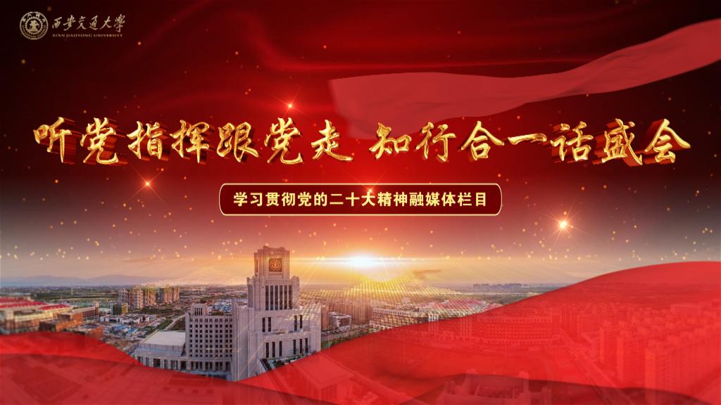 开栏语:西安交通大学坚持将宣讲作为党的二十大精神学习宣传的重要形式,按照上级要求和学校部署,围绕“七个讲清楚”要求,形成“六级宣讲”体系。为持续营造学习宣传氛围,深化宣讲宣传成效,党委宣传部与教师工作部、学工部、研工部、校团委、马克思主义学院、网信中心联合策划推出百期“听党指挥跟党走 知行合一话盛会——学习贯彻党的二十大精神融媒体栏目”,栏目分为理透纸背、信念领航、青春微言和一线之声等子栏目,分别聚焦专家、青年教师、辅导员、学生骨干和一线教工等开展宣讲和访谈活动,即日起原则上在周一、周三、周五于交大新闻网、学习交大、学习强国与人民号等媒体滚动播发,敬请关注。