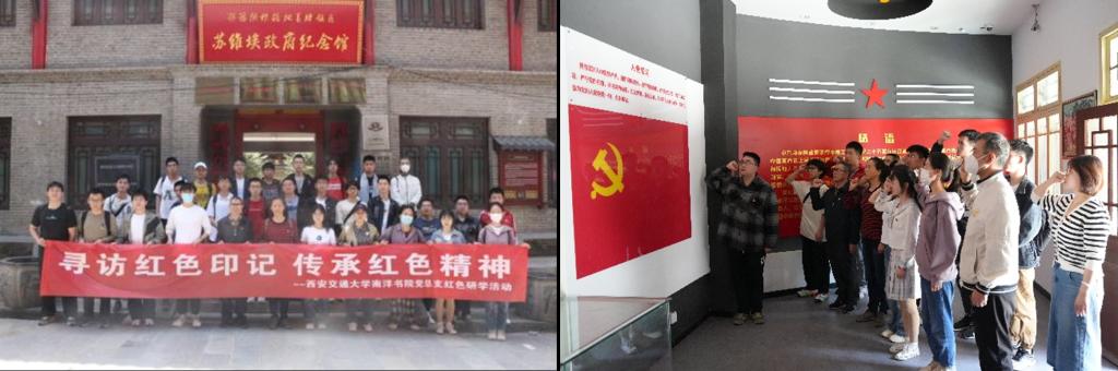 丰富学习形式,注重学习成效。南洋书院党总支、团委组织师生党团员代表赴蓝田县开展“寻访文化印迹,传承红色精神”红色研学活动,参观葛牌镇苏维埃政府纪念馆,重温入党誓词,加强理想信念教育。各党支部积极开展支部共建,联合华中科技大学19级第三党支部学习两会精神,本研支部共建学西迁精神,党团共建深化学习党的二十大精神。