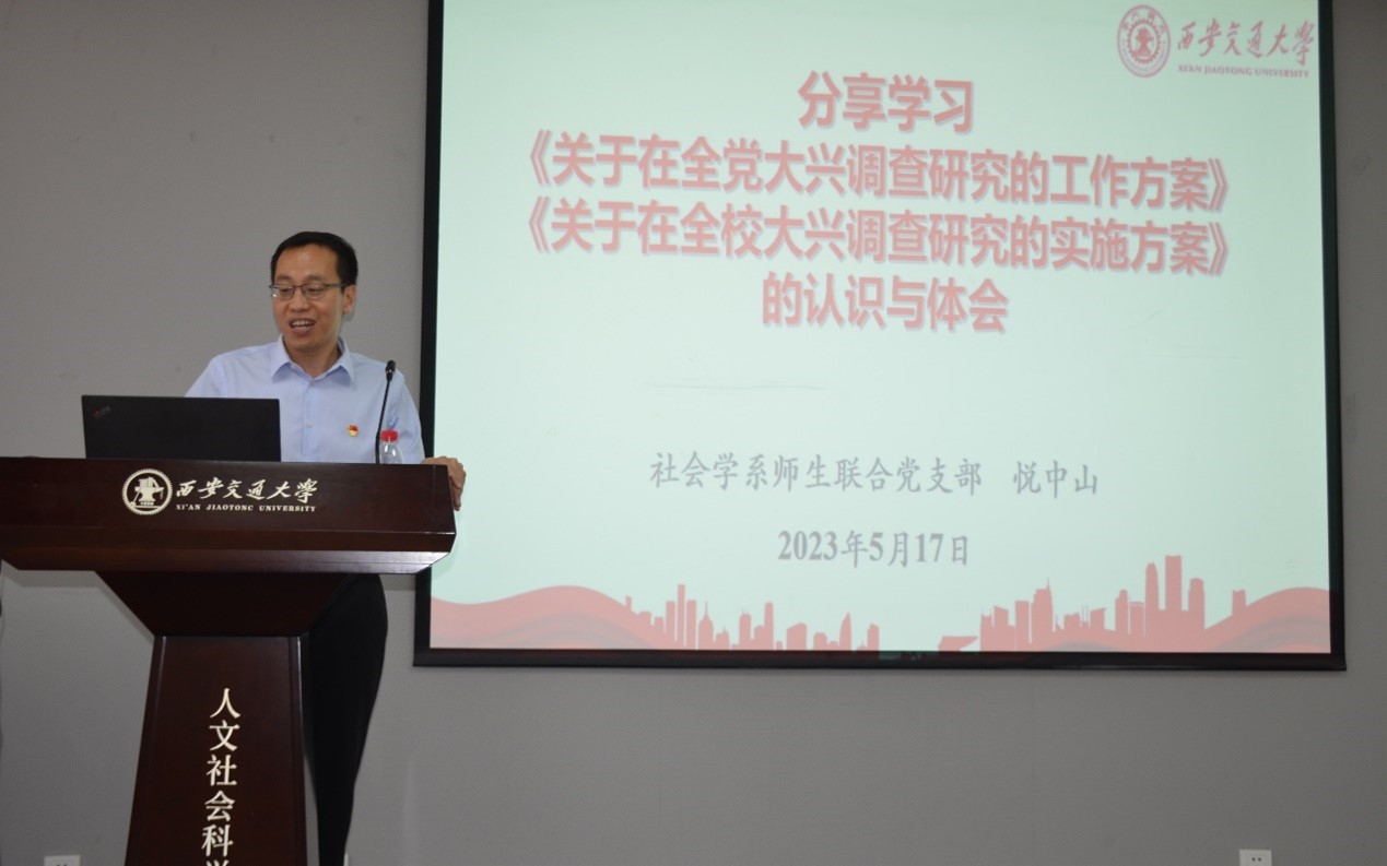 在读书班环节,社会学师生联合党支部书记悦中山教授带领大家学习了《关于在全党大兴调查研究的工作方案》《关于在全校大兴调查研究的工作方案》,分享了认识和体会。他结合社会学学科开展调查研究的启示,强调通过坚持正确的理论、采用正确的调查与分析方法,及时吸纳大数据等可行的新方法,避免“先入为主”“调而不研”“高谈阔论”等不正确的调查研究,通过开展调查研究做到“真研究问题、研究真问题”,运用好调查研究的成果,真正解决工作中面临的问题。