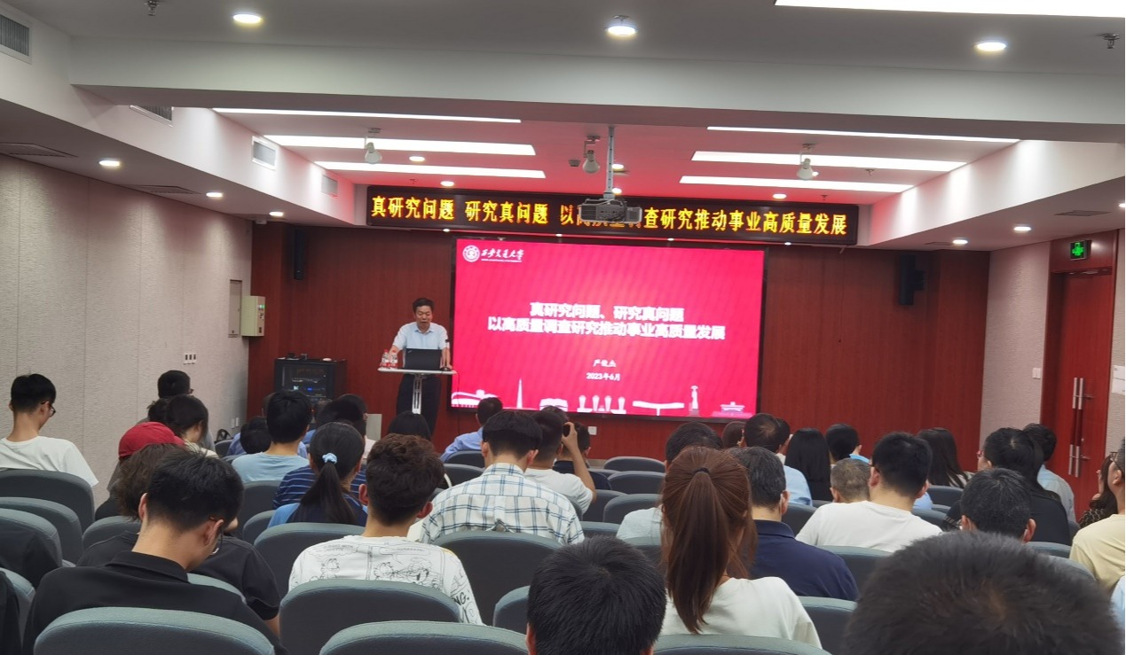 严俊杰回顾了中国共产党百年发展历程,传达学习了习近平总书记关于主题教育有关重要讲话重要指示批示精神,领学了习近平总书记关于调查研究的重要论述,他指出,重视调查研究一直是中国共产党的优良传统,是做好各项工作的重要基础。严俊杰以浙江“千万工程”等为案例,分享了改进工作、推动发展的认识和体会,指出学习贯彻习近平新时代中国特色社会主义思想,就是要善于发现问题、正确分析问题、着力探寻解决问题的方法。他强调,要坚持对标对表,认真学习贯彻党中央决策部署和习近平总书记重要讲话精神,提高调查研究能力,充分结合工作实际,真研究问题、研究真问题、真解决问题,不断加强党的创新理论武装,以高质量调查研究推动事业的高质量发展。