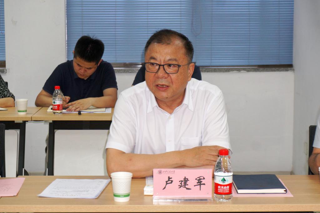 卢建军充分肯定了马克思主义学院取得的发展成就。他指出,加强马克思主义学院建设,是深化马克思主义理论研究和建设的重要举措,是培养担当民族复兴大任时代新人的内在要求,要认真阐释宣传研究好党的创新理论,将党的理论创新成果全面贯穿、有机融入各门课程,在政治引领、学理阐释和价值塑造上下功夫,着力打造马克思主义理论教育教学、研究宣传和人才培养的坚强阵地。要以主题教育为契机,对标对表、不折不扣贯彻落实习近平总书记重要讲话精神和党中央决策部署,系统学习领会习近平总书记关于哲学社会科学工作的重要论述,坚决贯彻落实“六要”“八个相统一”重要要求,做到理论与实际、学习与实践、宏观与微观“三个贯通”,坚定不移用马克思主义中国化时代化的最新成果武装头脑、指导实践、推动工作。