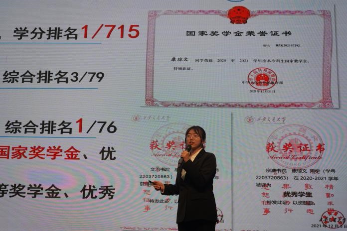 作为一名学生,她深知专业学习是重中之重,是根本中的根本。面对转专业后全新的校区环境与需要重新补修的高达20个学分的课程,她顶住压力迎难而上、踏踏实实勤恳求学,大二稳居专业前三,经过一年调整适应,大三学年重回专业综排第一。65门必修课程中,康琼文同学有52门达到90分及以上,更有29门达到94分及以上,多门课程取得专业最高分;六级分数621分,四级分数654分。