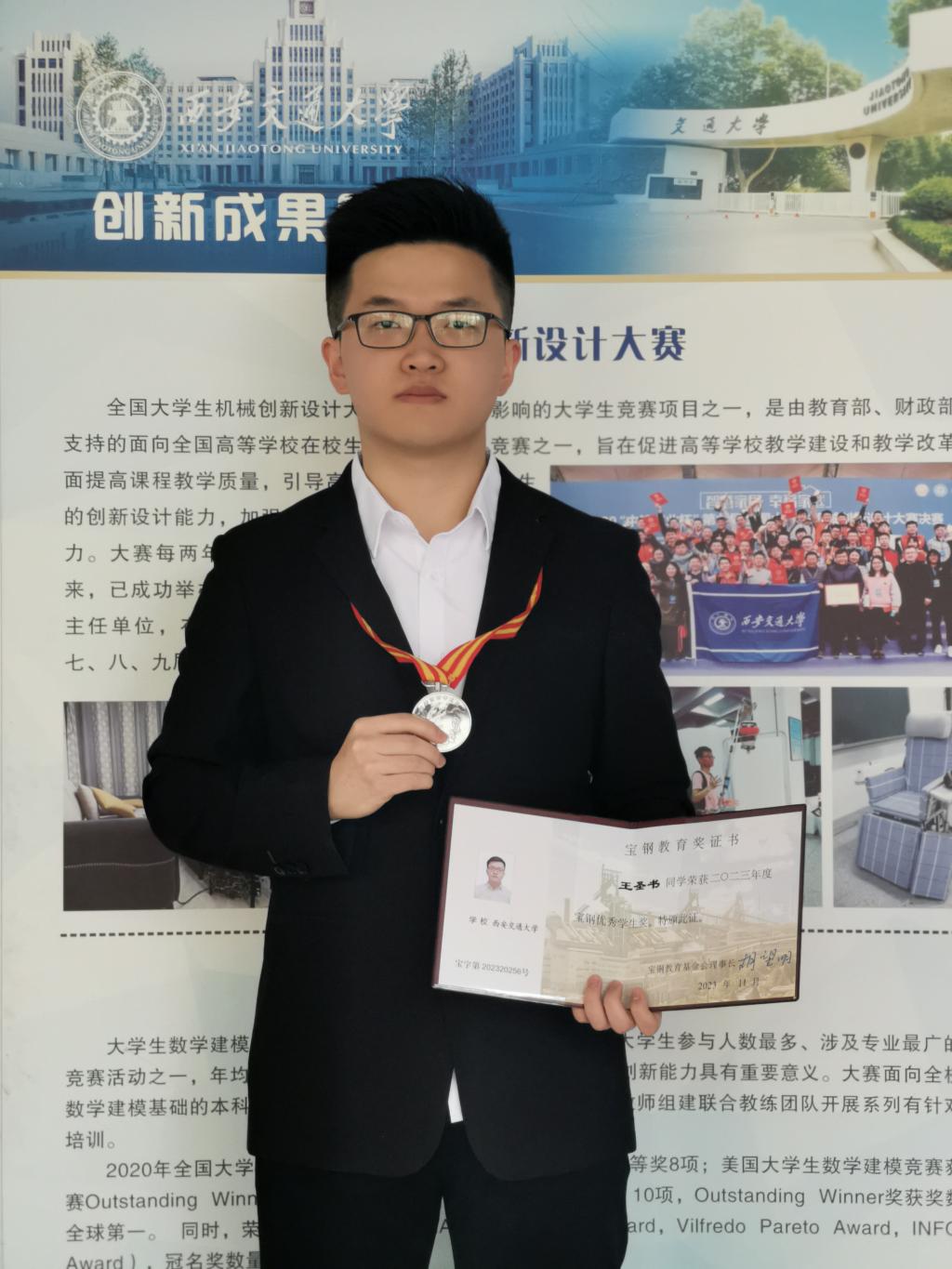 王圣书,中共党员,仲英书院2020级本科生,就读于电信学部微电子科学与工程专业。曾获宝钢优秀学生奖、苏州育才奖学金、杭州瑞盟科技英才奖学金、西安交通大学优秀学生、仲英书院优秀共青团干部等荣誉。连续三年担任班级学习委员。曾获全国大学生数学建模竞赛省级一等奖等十余项竞赛奖项,作为核心成员完成一项省级优秀大学生创新创业项目。参与校级社会实践三次,企业社会实践一次。