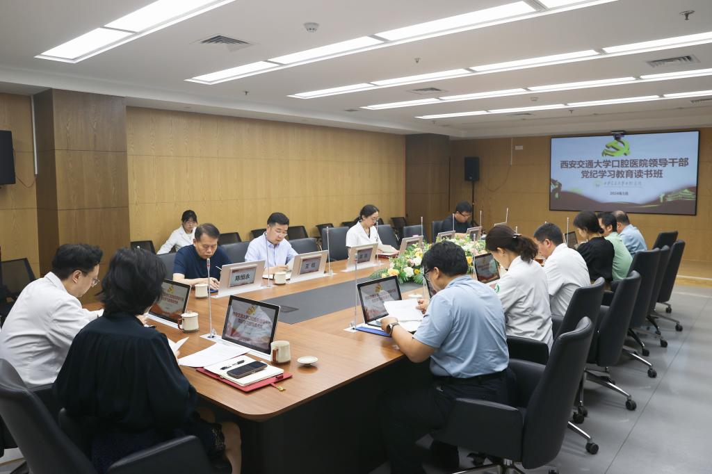 按照口腔医院党纪学习教育实施方案部署,5月20日,口腔医院举办第三期领导班子党纪学习教育读书班,集中学习修订后的《中国共产党纪律处分条例》(以下简称《条例》)分则中部分内容,党委书记滕晶主持读书班并讲话,院领导班子成员参加会议。