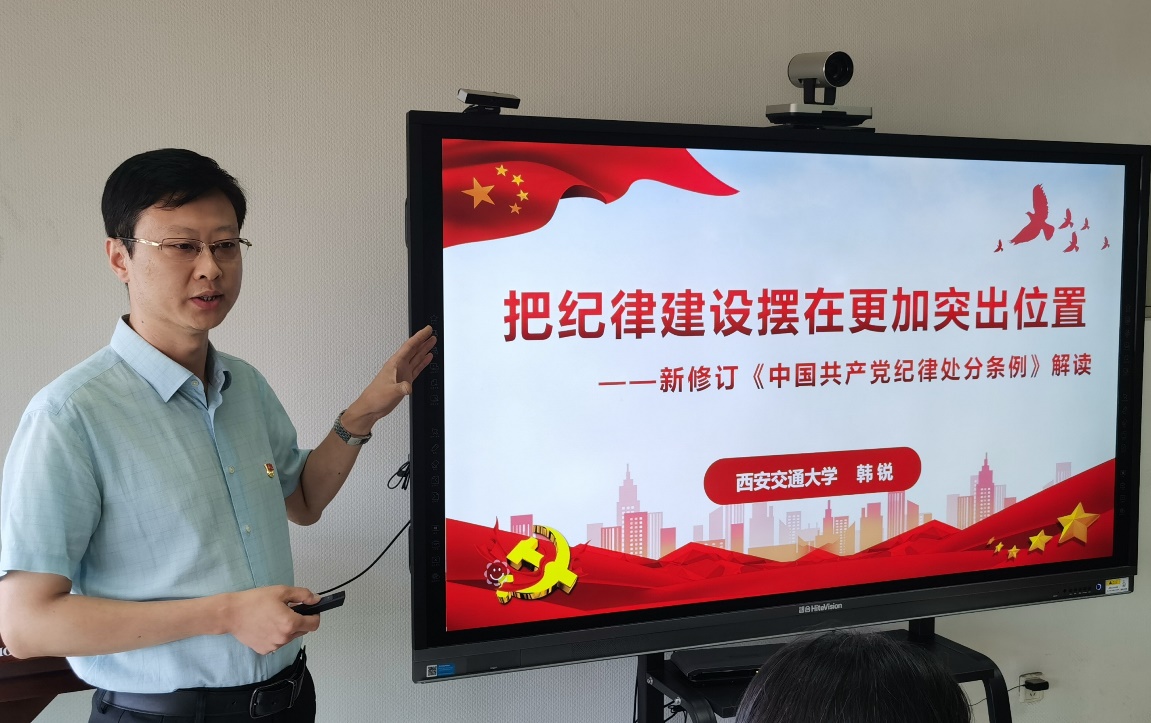 会上,马克思主义学院的韩锐教授为在场党员干部带来了一场题为《把纪律摆在更加突出位置》的专题报告。韩锐以深厚的理论功底,全面系统地解读了《中国共产党纪律处分条例》的修订意义、内容和价值。他通过引用生动案例,形象地阐述了党纪的重要性和严肃性,并强调在新时代背景下,要自觉将纪律要求内化于心、外化于行,提升认识,以知促干,在中国式现代化建设中做学纪知纪明纪守纪的表率。