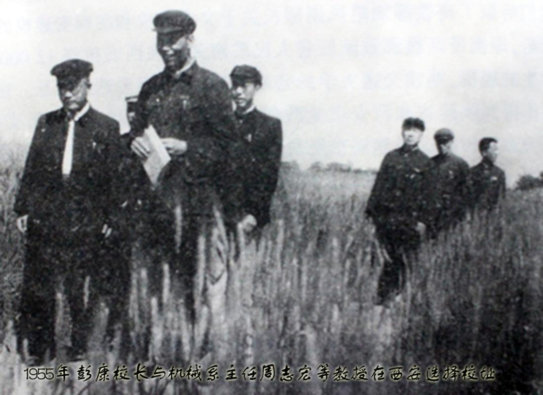 1955年,彭康校长和机械系主任周志宏等在西安选址